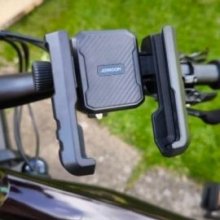 I can't believe how versatile this phone holder is. It fits both my mountain bike and scooter handlebars easily.