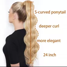 Elevate your style instantly with our Blonde Wavy Hollywood Style Clip-In Ponytail. Designed to give you that red-carpet-ready look, this luxurious hairpiece adds volume, length, and glamour to your everyday or special occasion hairstyles. Perfect for women who love to make a statement, this ponytail is the ultimate accessory for achieving that flawless, voluminous wave.