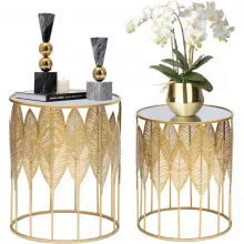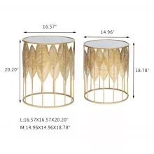 Transform your living space with the Comfort Corner End Tables Set of 2, a stunning addition to any home decor. These gold nesting side coffee tables are designed to offer both style and functionality, making them a perfect fit for your living room, bedroom, or patio. The unique leaves design adds a touch of luxury, creating an exquisite ambiance in your home.