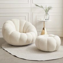 Introducing our Modern Minimalist White Velvet Lazy Sofa, a perfect blend of style and comfort for your living space. Designed to add a touch of elegance and coziness to any room, this chair is not just a piece of furniture, but a statement of modern living. Its unique pumpkin shape and plush lamb cashmere fabric invite you to relax and unwind in its welcoming embrace.