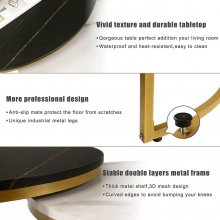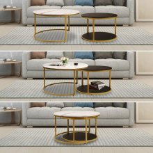 Each table in this set is a testament to superior craftsmanship. The tops are made from eco-friendly P2 particle board, known for its durability, water resistance, and wear resistance. The thick, gold metal frame not only adds to the aesthetic charm but also ensures robust stability. The faux marble finish on the wooden tops exudes a vintage, natural beauty, fitting seamlessly into any interior décor, from minimalist to luxurious.