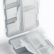 Effortless to open and close with just one hand, and it provides a reassuring sense of security when sealed. I appreciate its compact design and the inclusion of 10 compartments in three different sizes. During my travels, I utilized one side for storing small jewelry and the other for supplements, and it performed admirably.